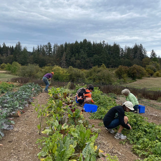 The 20 or so members had a busy day helping secure fencing with concrete, pick and sort cherry tomatoes and ground cherries (gooseberries), remove thistle and dock, and sort carrot seed and garlic, among other activities.